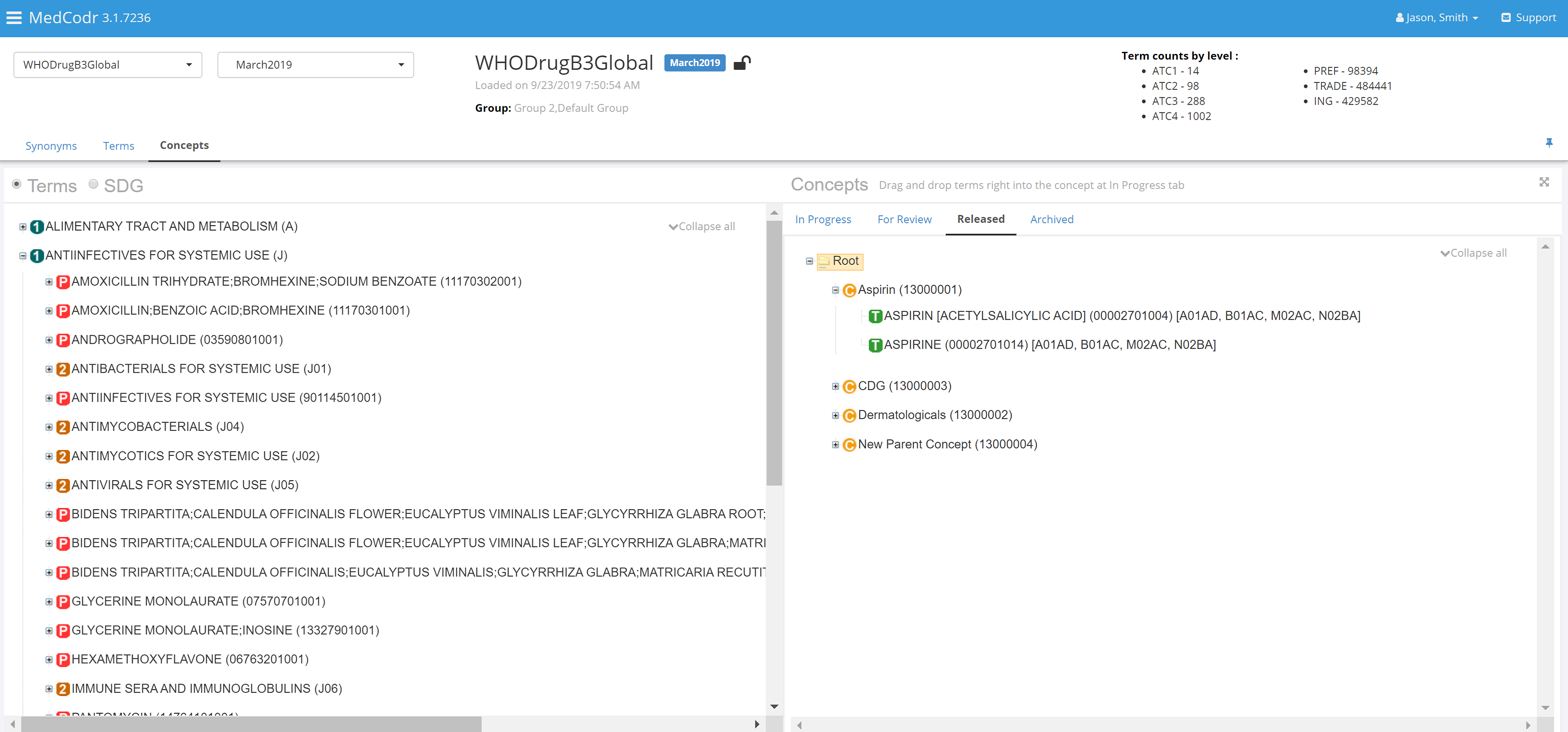 MedCodr supports Standard MedDRA Queries (SMQ), Standardized Drug Queries (SDQ) and custom queries/groups/concepts. Easily search and browse all concepts.